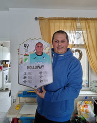 My brother-in-law was over the moon it! The moment he saw himself depicted as a 6ft 4” out-of-position striker with a pace rating of 3 for Wales, he burst into laughter. We would've shared a video, but his colorful language would have required a lot of muting 😂. The quality, even without the metal backing, exceeded expectations, and we're so glad we opted for the larger size. It turned out absolutely perfect, and the supplier's communication leading up to the Christmas rush was top-notch! 👏