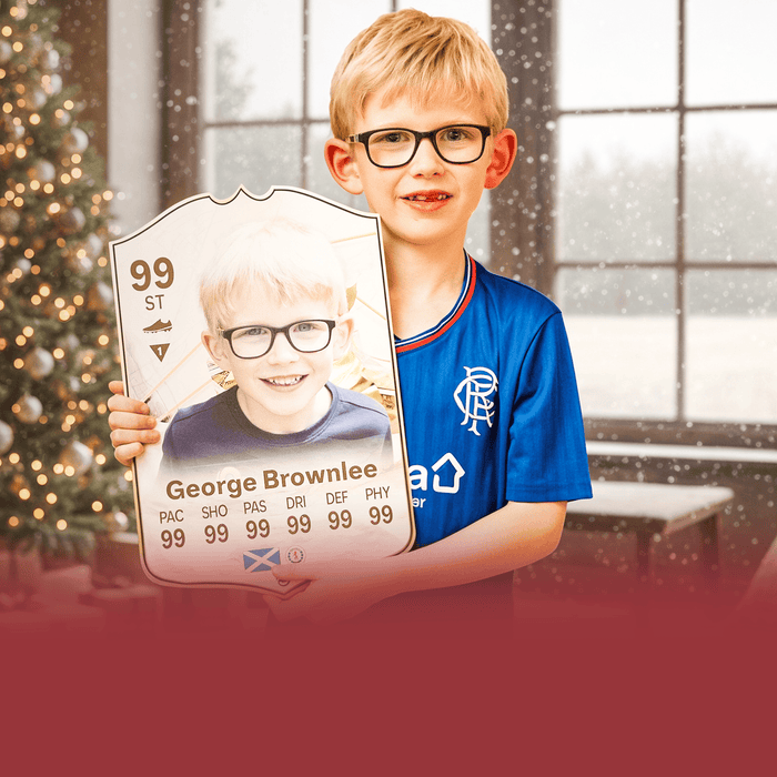 When it comes to personalising your card, the basic steps are to upload a photo and add a name to your card. Then you’ll add details like your player’s position and skill ratings out of 99 for each football skill shown on the card. Our online card builder makes this really easy. And if you aren’t a football card expert, don’t worry!