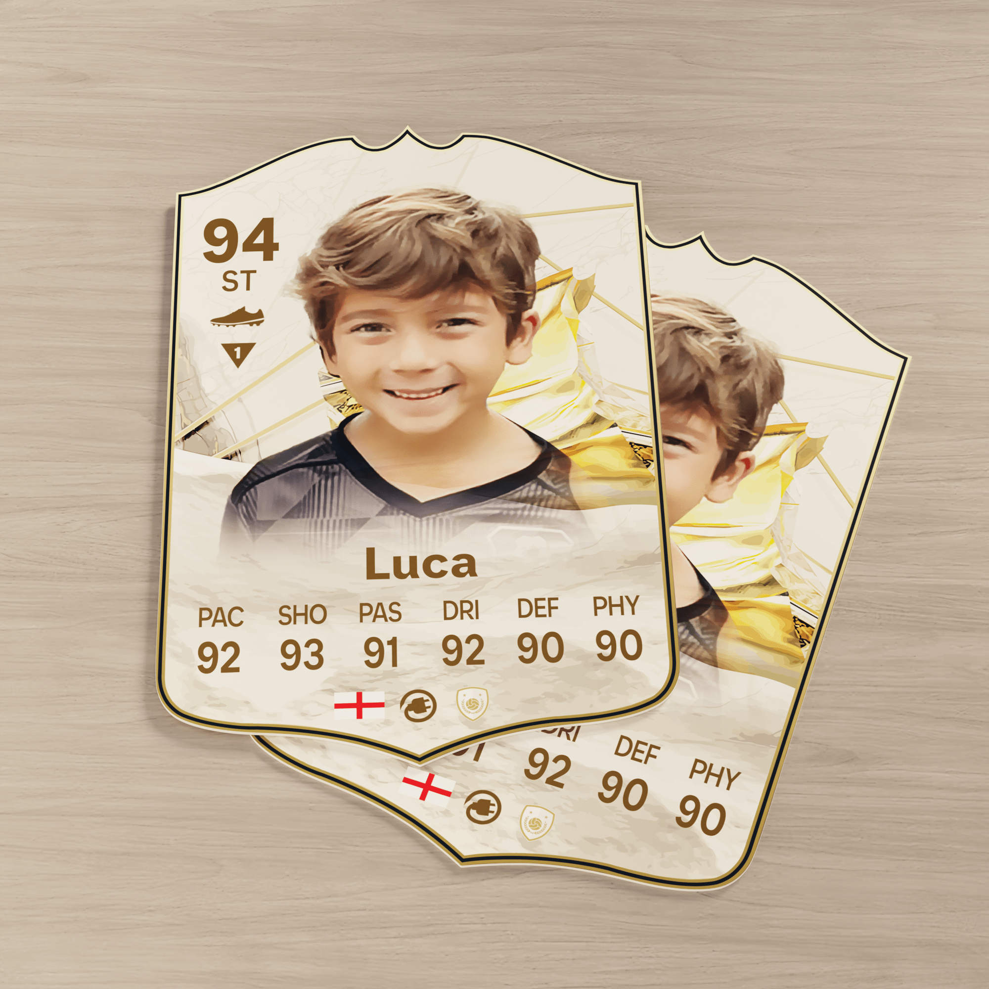 Yes! Our football card designers will remove the background from the photo you upload so it looks just like the football cards you might’ve seen games like EA FC 25, EA FC 24 or FIFA. We’ll also position the photo perfectly on the football card so it looks great. If there are any problems with the quality of your photo, we’ll reach out and let you know. Plus, our website's AI will remove the background on the image for visual purposes before purchase so you can see it without a background on the card.