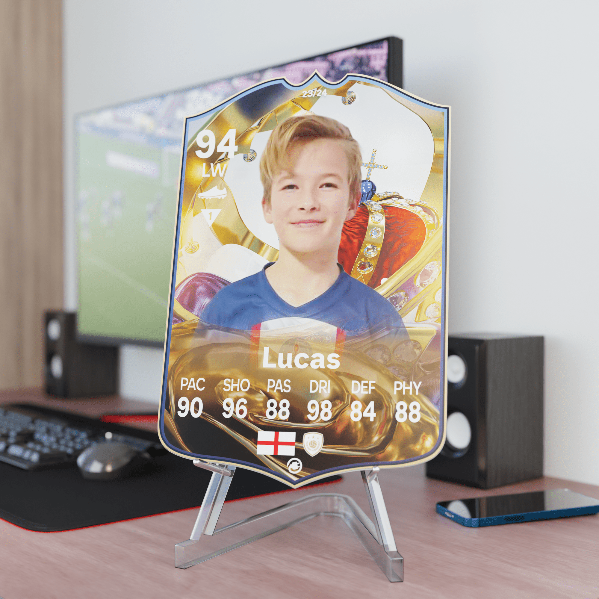 Yes! Our football card designers will remove the background from the photo you upload so it looks just like the football cards you might’ve seen games like EA FC 25, EA FC 24 or FIFA. We’ll also position the photo perfectly on the football card so it looks great. If there are any problems with the quality of your photo, we’ll reach out and let you know. Plus, our website's AI will remove the background on the image for visual purposes before purchase so you can see it without a background on the card.