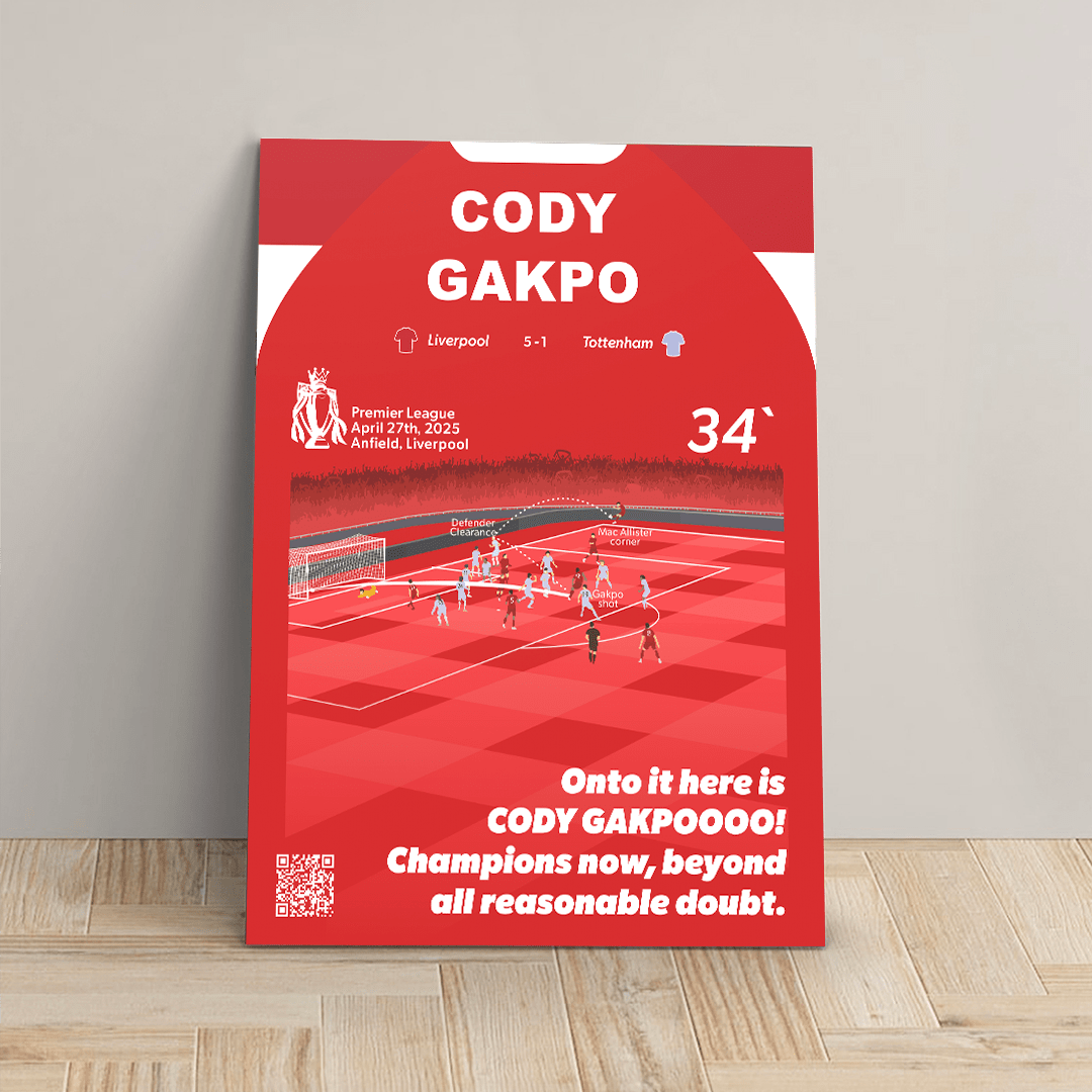 Match moments are the perfect way to forge unforgettable football moments onto a metal poster so they can be with you forever. All match moments include our unique QRGoal feature which lets you rewatch the moment at any time.