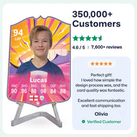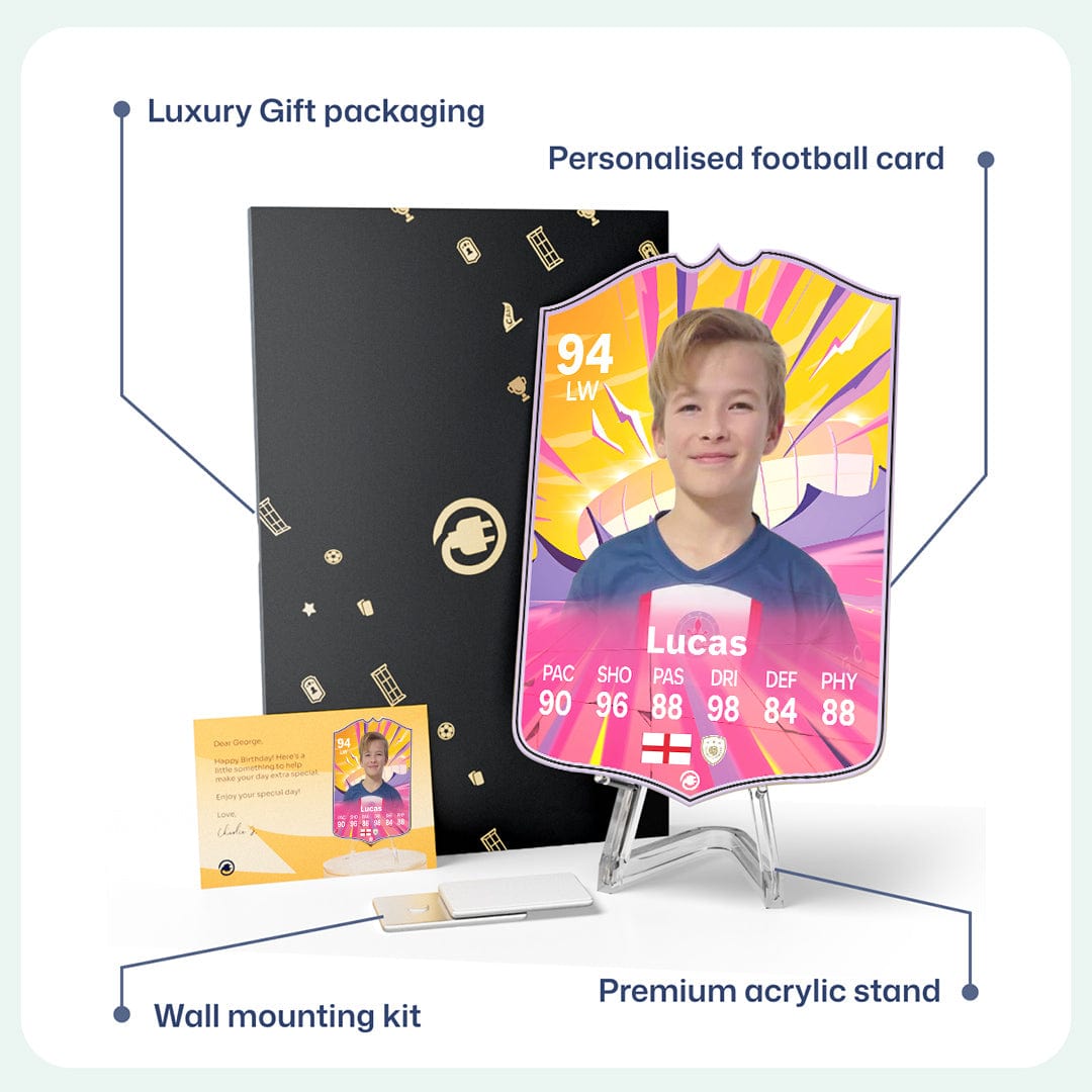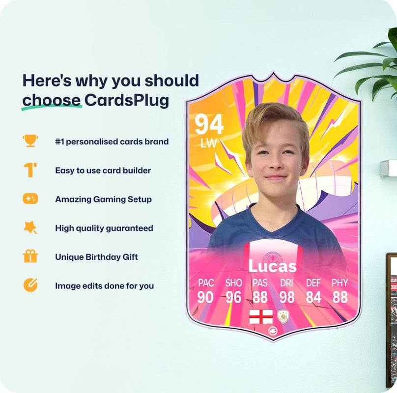 CardsPlug is home to the world’s favourite personalised football cards. Our easy football card builder lets you make a real life football card with your own name, photo, and skill ratings. With 100+ designs to choose from and some inspired by EA SPORTS FC 26 cards seen in EA FC 26, EA FC 25 and FC 24 as well as FIFA cards seen in games like FIFA 23 and FIFA 22.