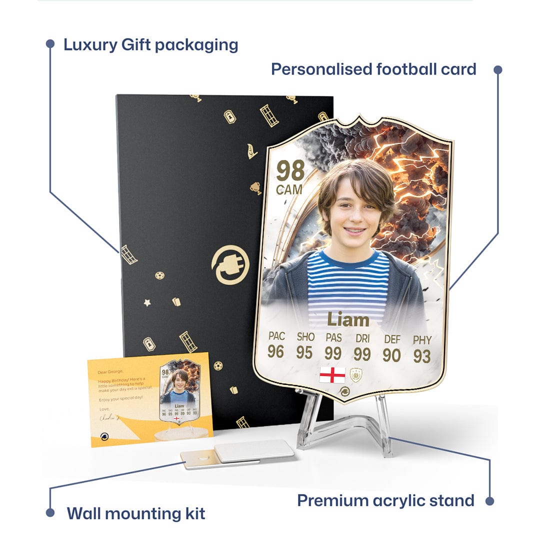 CardsPlug is home to the world’s favourite personalised football cards. Our easy football card builder lets you make a real life football card with your own name, photo, and skill ratings. With 100+ designs to choose from and some inspired by EA SPORTS FC 26 cards seen in EA FC 26, EA FC 25 and FC 24 as well as FIFA cards seen in games like FIFA 23 and FIFA 22.