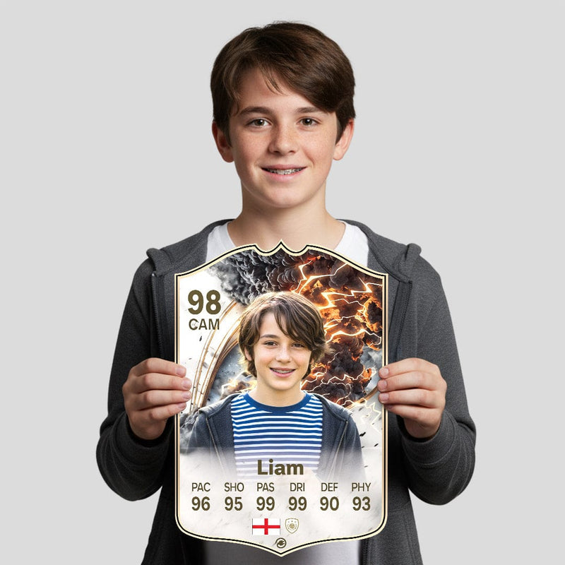Yes! Our football card designers will remove the background from the photo you upload so it looks just like the football cards you might’ve seen games like EA FC 25, EA FC 24 or FIFA. We’ll also position the photo perfectly on the football card so it looks great. If there are any problems with the quality of your photo, we’ll reach out and let you know. Plus, our website's AI will remove the background on the image for visual purposes before purchase so you can see it without a background on the card.