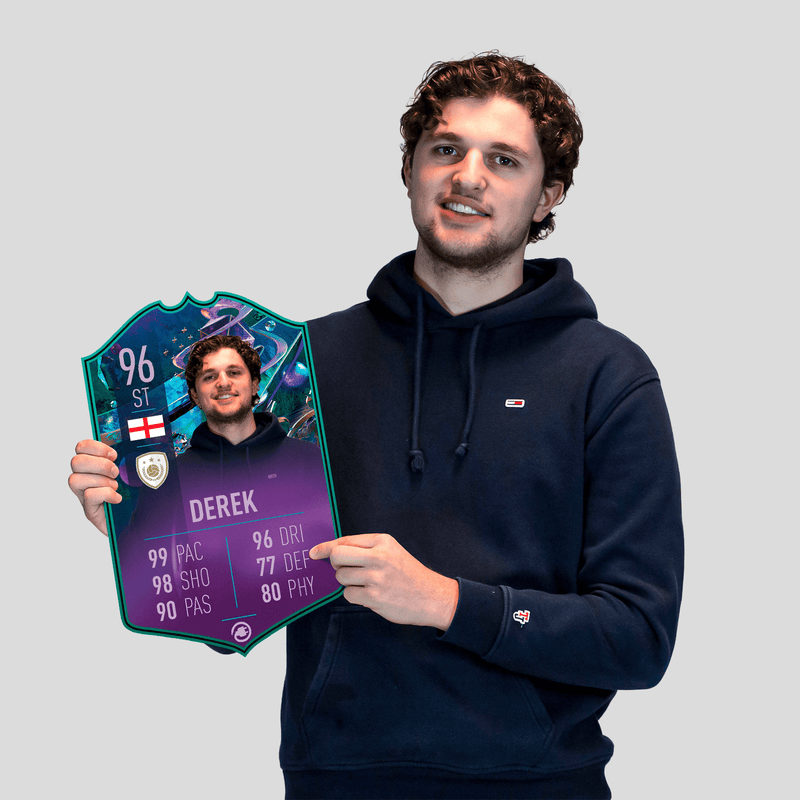 When it comes to personalising your card, the basic steps are to upload a photo and add a name to your card. Then you’ll add details like your player’s position and skill ratings out of 99 for each football skill shown on the card. Our online card builder makes this really easy. And if you aren’t a football card expert, don’t worry!